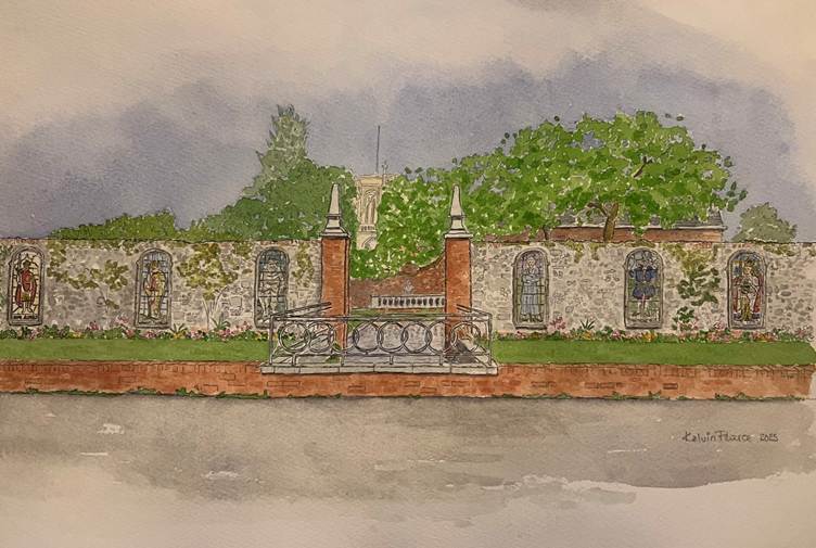 His vision was to open the Water Garden to the public. He imagined a small memorial chapel in one corner, and another space dedicated to Jane Austen. He envisaged six stained-glass arched doors commemorating key figures associated with Winchester, including Sir Walter Raleigh, William Walker, and William of Wykeham. Local artist Kelvin Pearce illustrated what this might have looked like. John also wished to honour Peter Smithers and Ian Fleming, whose wartime intelligence work saved many lives, and to make the little-known connection between James Bond and Winchester more widely known. The close could also have featured plaques honouring members of the armed forces, providing a quiet place for reflection. His ambition was for the garden to hold the same cultural prestige as a museum.