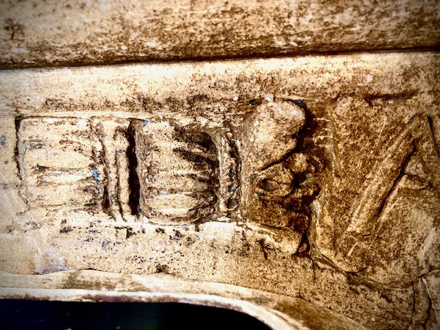 On a rainy day, the entrance to this tunnel is a good place to shelter. It is known as The Slype. Slype is an uncommon word and means a covered way between a cathedral transept and the Chapter House or Deanery. As you look out from the tunnel back towards the green, what was the Chapter House is immediately to your left. In the days of the Benedictine Priory that once stood on this site, the Chapter House was where the monks would read. At the end of the pavement to your left, the Deanery still stands, but before we go and look at it, it is worth taking a closer look at the tunnel. You can see that the walls are covered in graffiti, much of it very old. For almost 200 hundred years, Winchester was a military city, and I can imagine many soldiers sheltering here from the rain. You can see that some of them came well prepared with chisels to deeply carve their names or initials. Carved near the end of the left wall of the tunnel (as you face the green) is a square with a cross, and next to that a second square with a cross and a circular hole in the centre. It is likely that these soldiers or perhaps choir boys were playing a game. The interior of the cathedral is also covered in graffiti, and the carved game appears inside too. We often think of cathedrals as places where the great and the good are remembered – but very ordinary people have left their mark here.