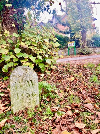 After a few yards to the left of the path, almost opposite the ‘Private Road’ sign on the road, there is a curious stone engraved ‘BW 1836’ set into the grass. It is thought this marks the Borough of Winchester boundary at the time.